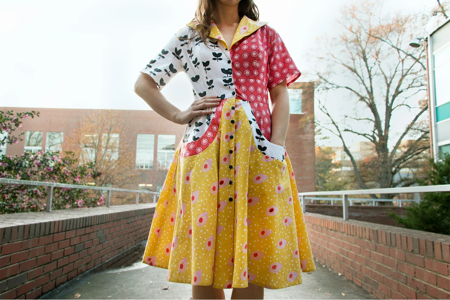 We first constructed a mock up which would allow us to work out any confusion in reading a commercial pattern. After the mock up was complete, we tailored the dress by drafting new a new fitted pattern for the final construction.
